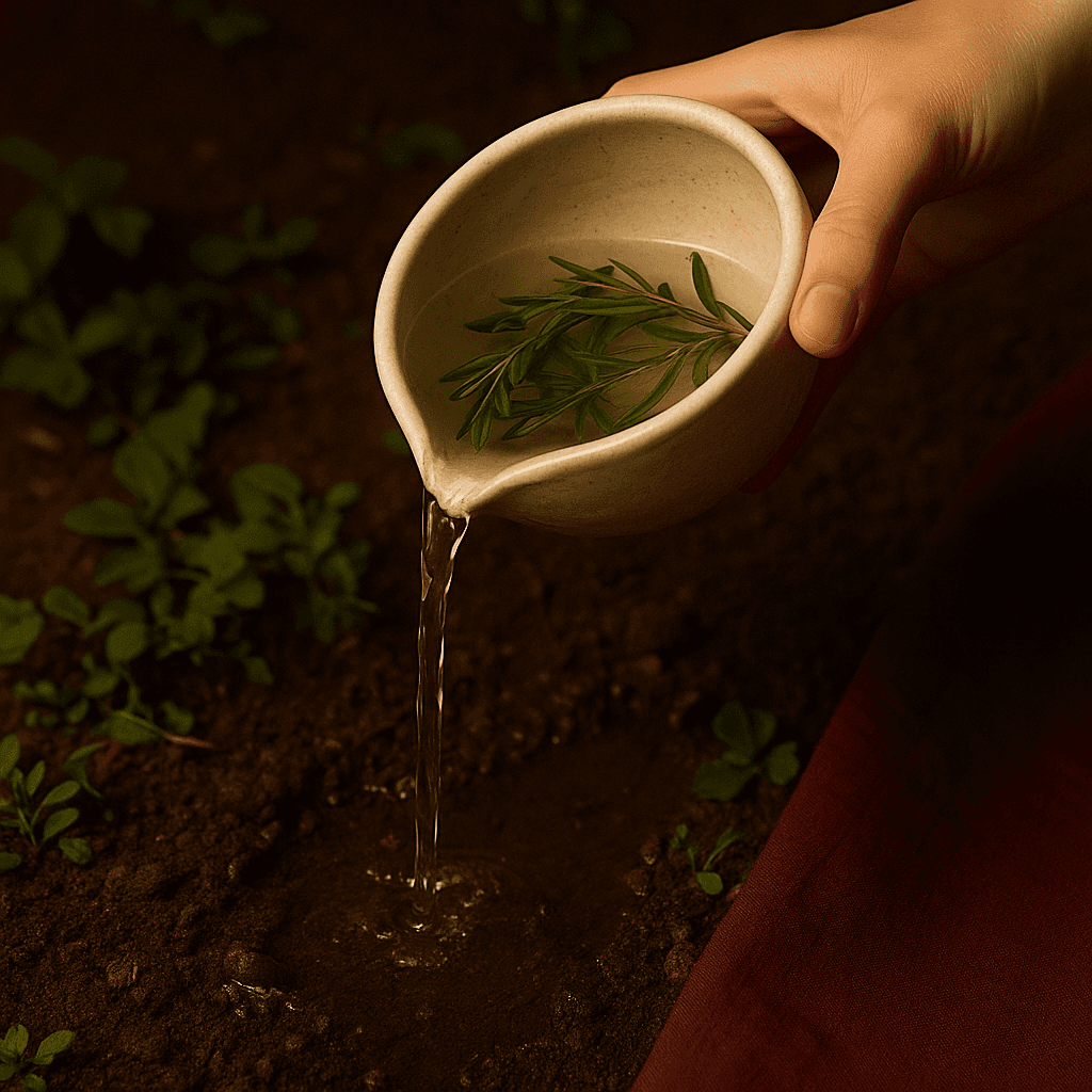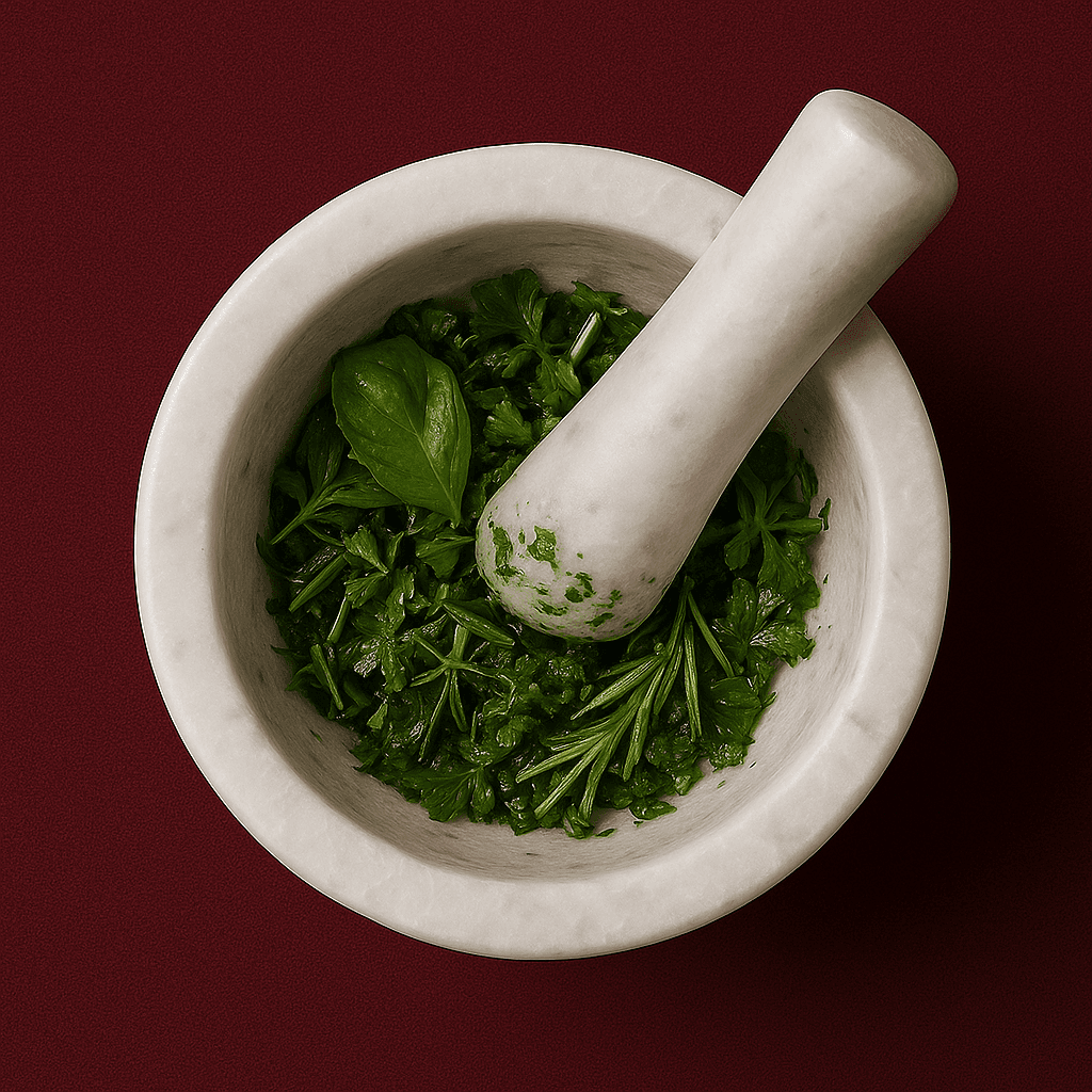 Arruda (proteção), alecrim (clareza mental), manjericão (conexão espiritual), alfazema (paz), louro (sabedoria), malva (intuição), hortelã (purificação)